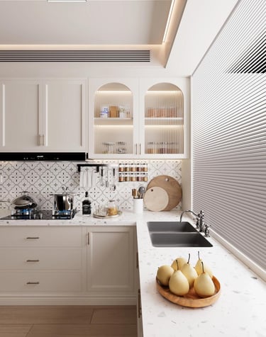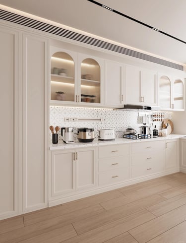 This style combines shaker panel detailing, balanced proportions, and a lighter palette that creates a welcoming and elegant atmosphere. It suits interiors that prefer timeless character over trend-driven styling.