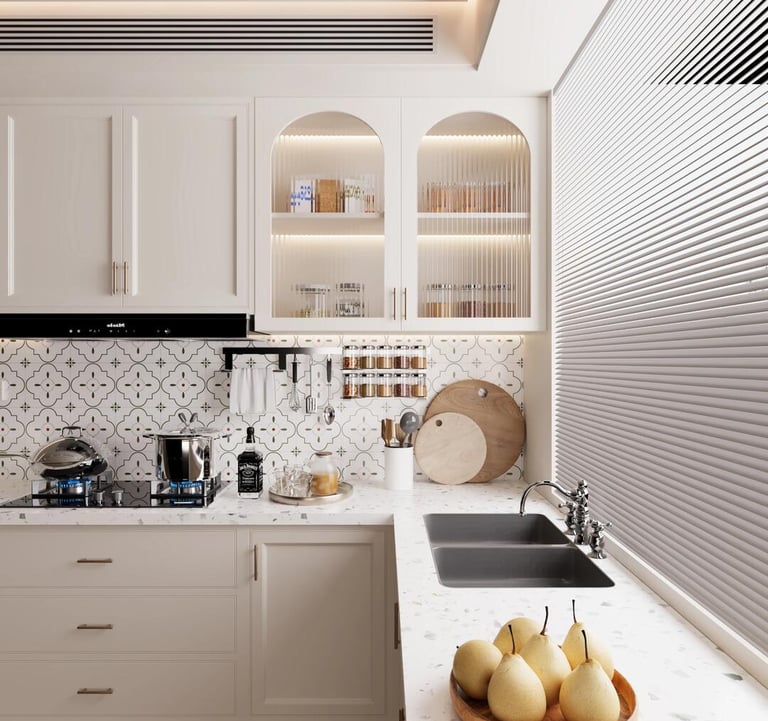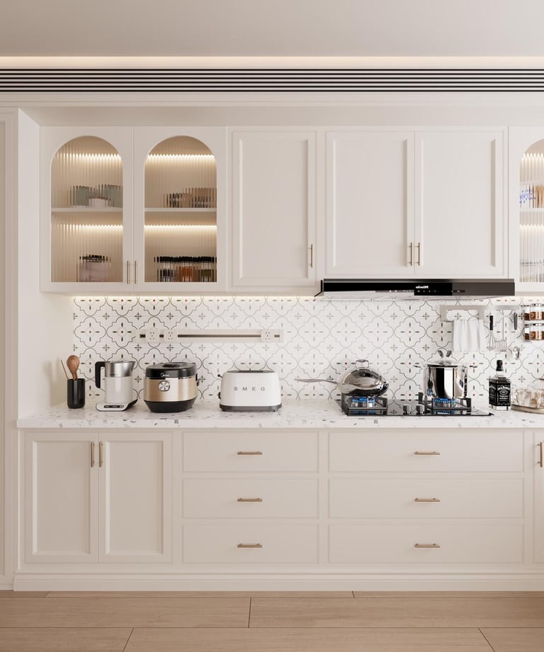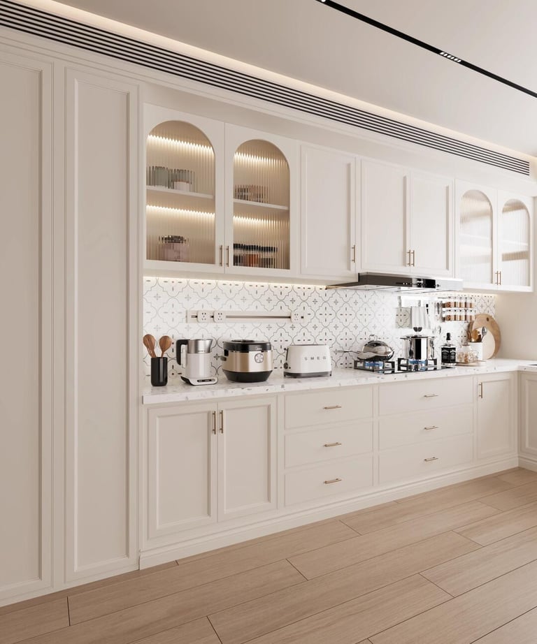 Cream Shaker is a custom kitchen cabinet style that brings classic shaker detailing into a softer, more refined interior setting. With its timeless door profile and warm cream tone, this design works especially well for villas, family homes, and residential interiors that want a classic kitchen look with modern practicality.