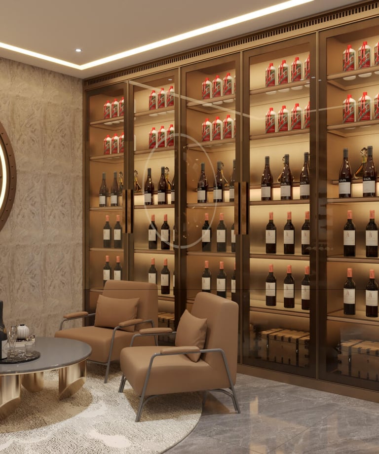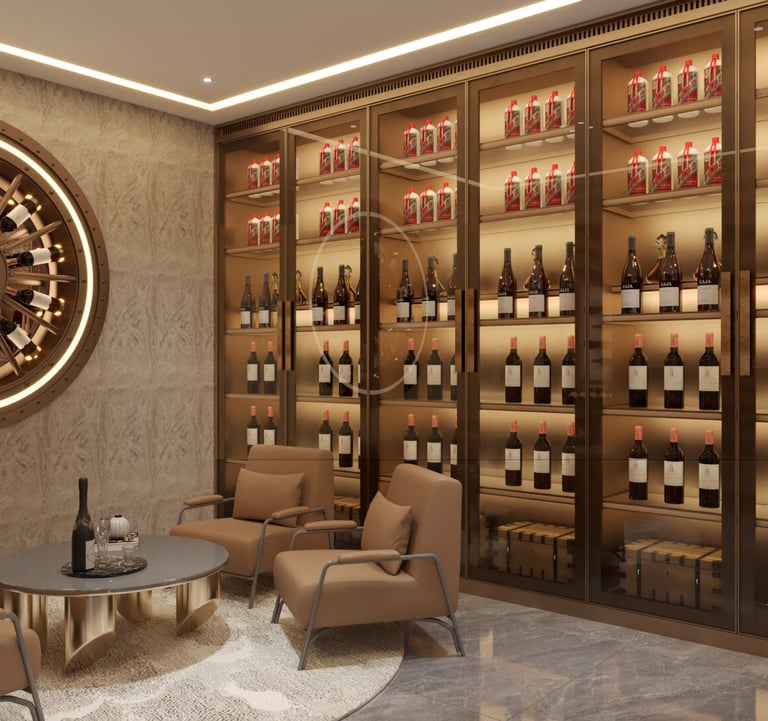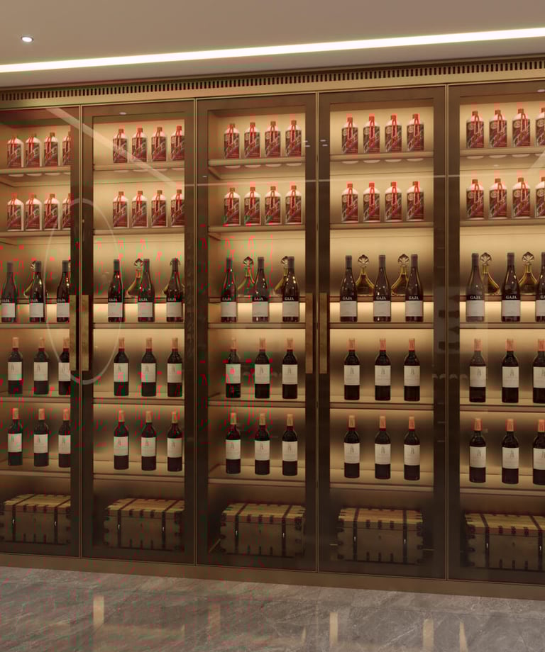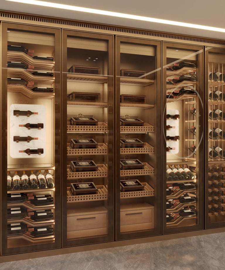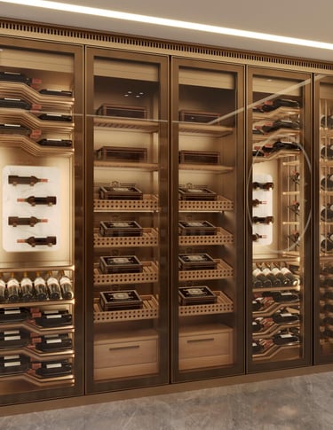 Crafted for the discerning mansion owner, this wine wall blends bronze, glass, and precision climate control to protect your prized wines. Every shelf is a statement of luxury, designed to impress guests and preserve your legacy—one vintage at a time.