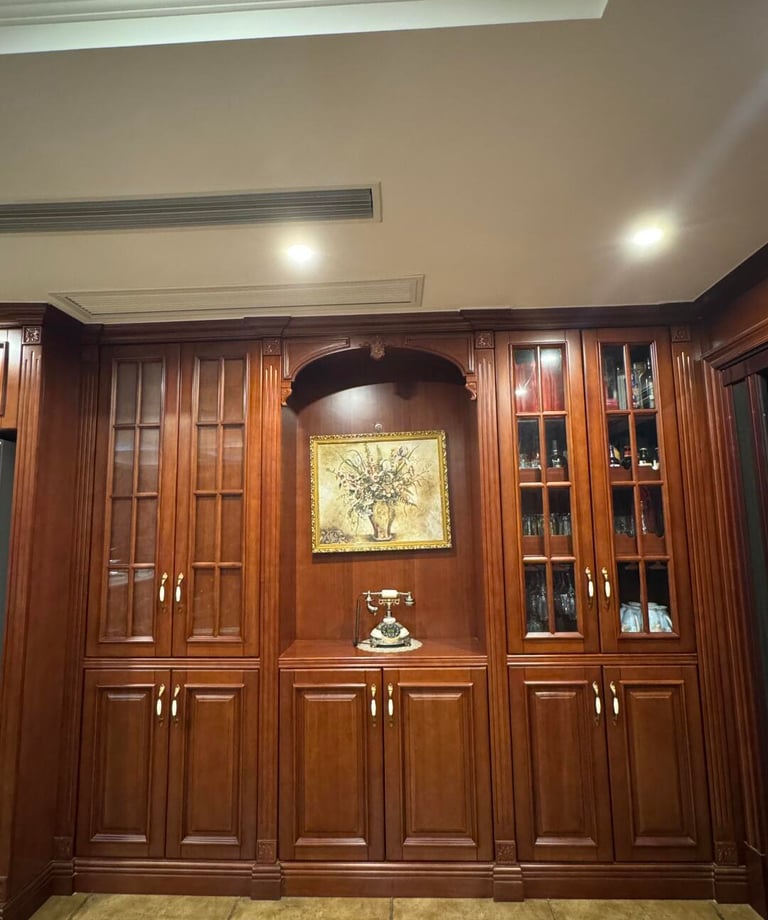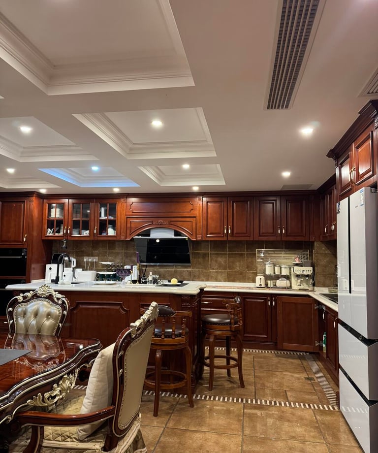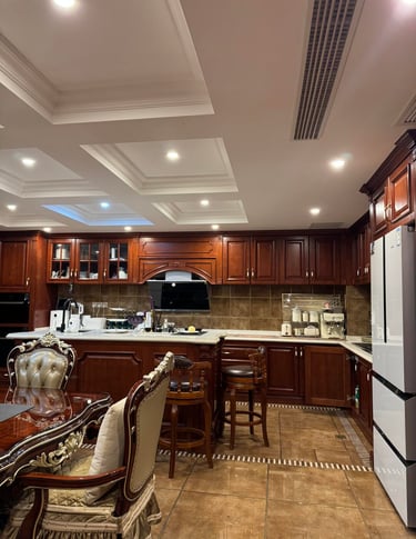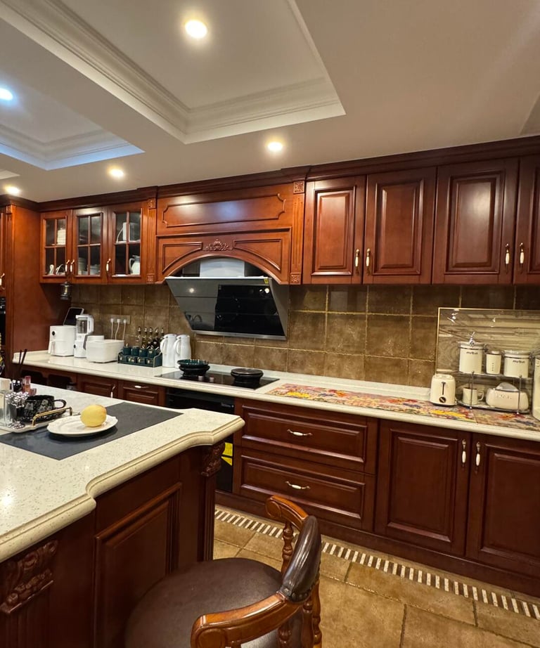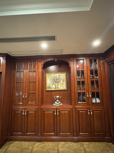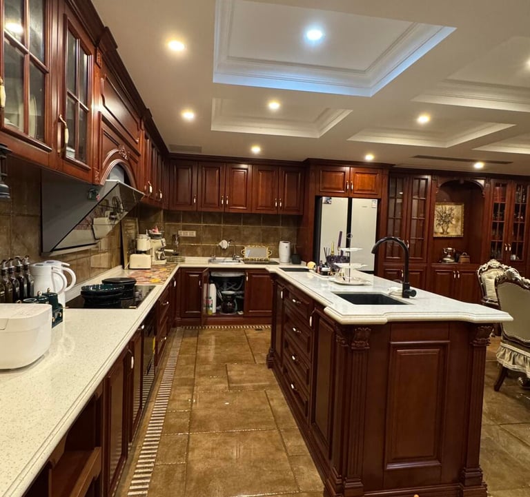 Mahogany Manor is a custom kitchen cabinet style created for interiors that value depth, warmth, and a more established traditional look. With rich wood-inspired tones and classic cabinet expression, this kitchen style is suitable for luxury homes, villas, and interiors that seek a stronger sense of heritage and character.