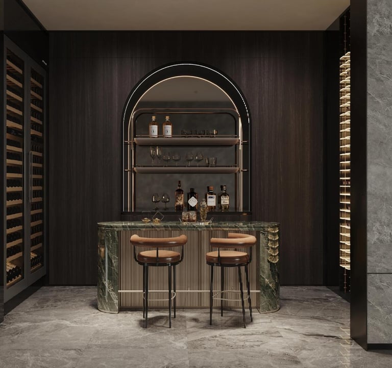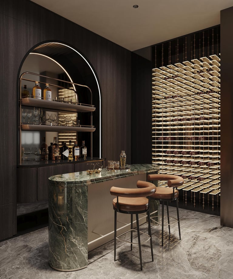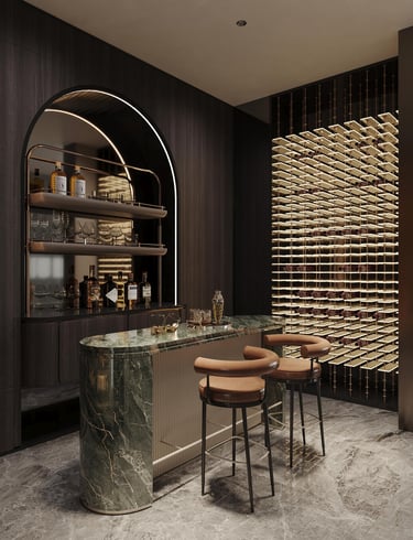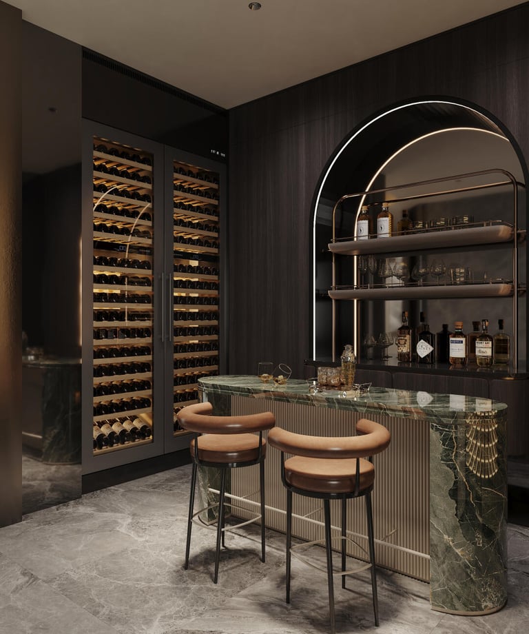 This cellar bar’s so fancy, even your wine bottles will start acting like A-listers—marble, mood lighting, and a vibe that says “I don’t just drink wine, I curate it.”