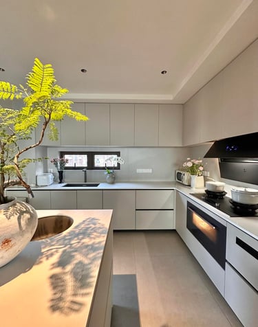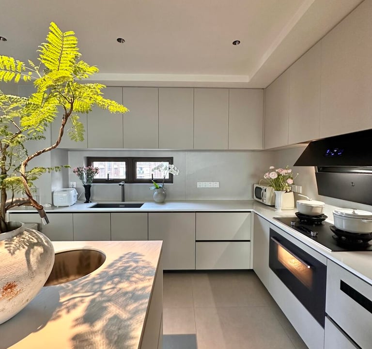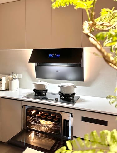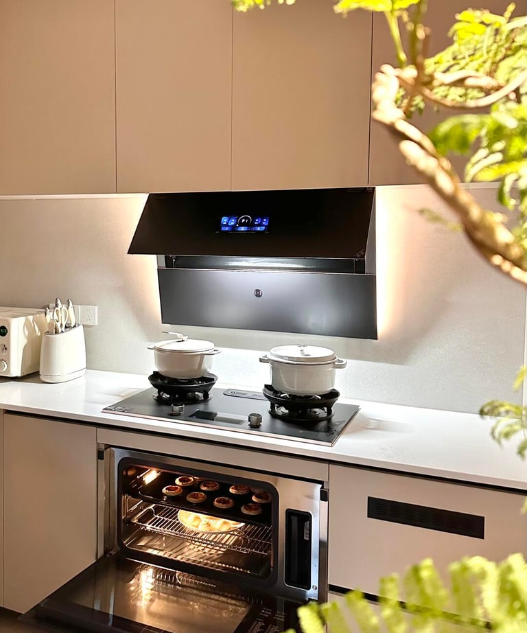 Seamless embedded appliances meet muted-toned minimalism—where smart functionality wraps into understated luxury, making daily cooking feel effortlessly refined.