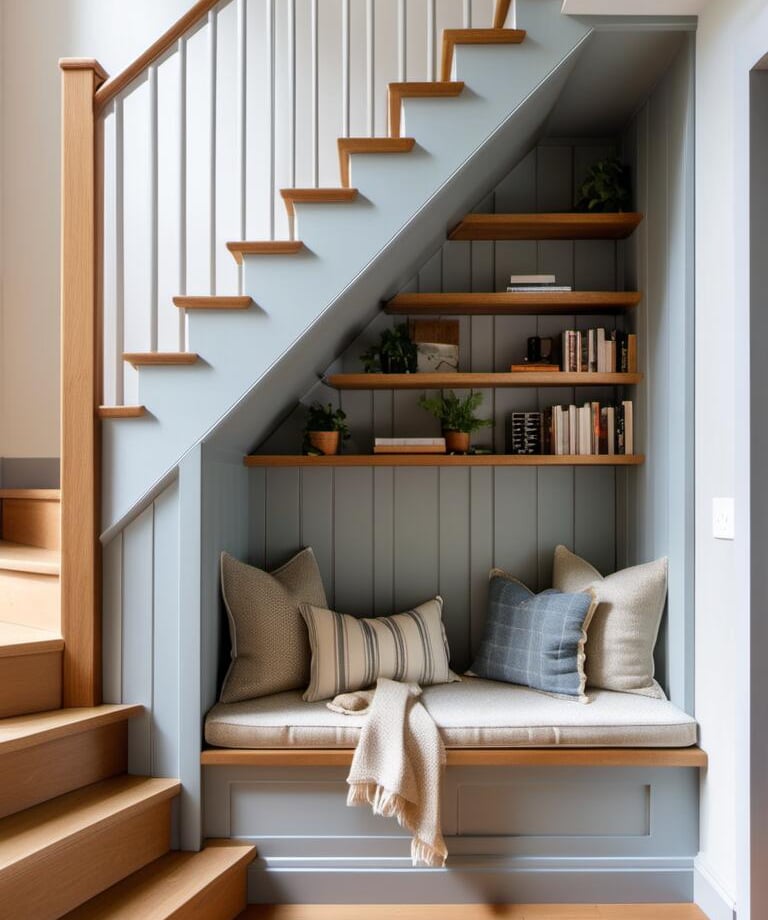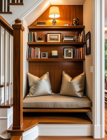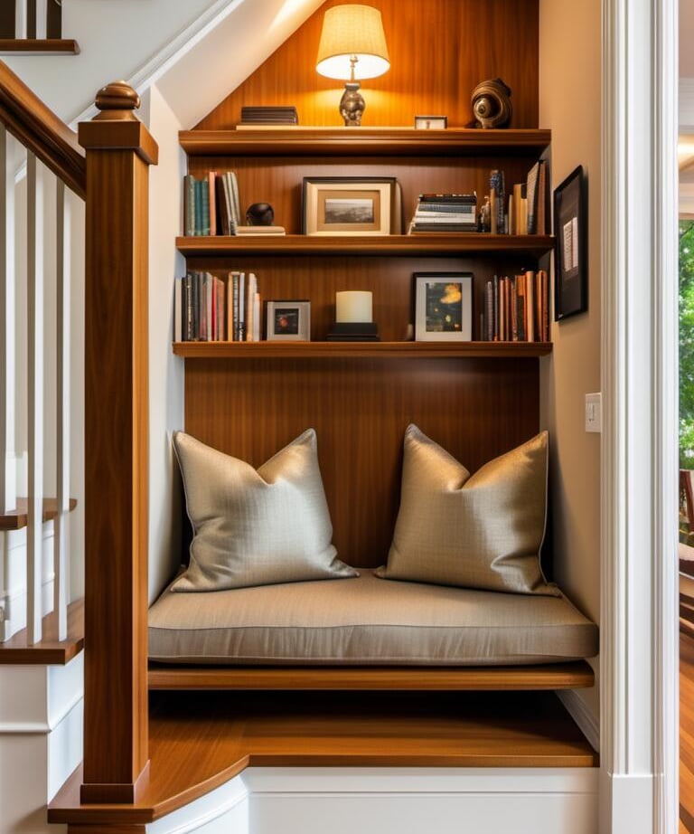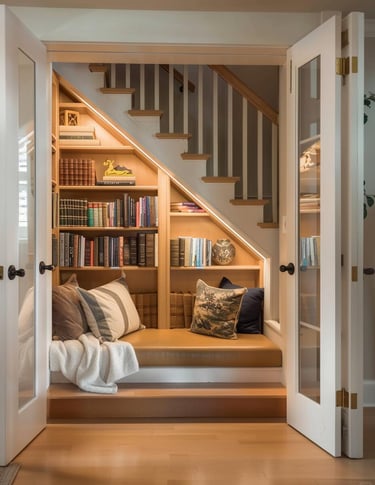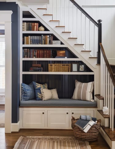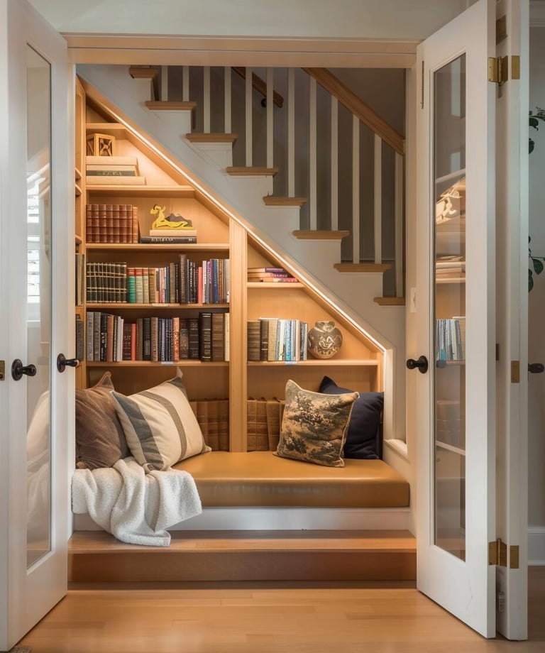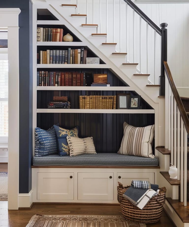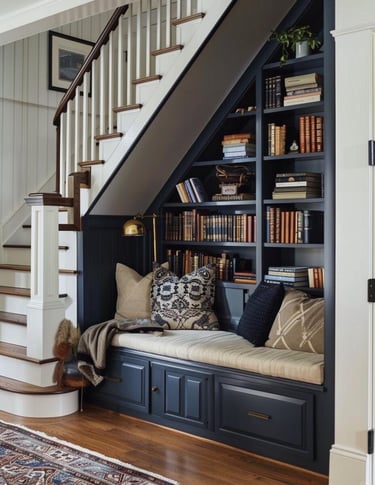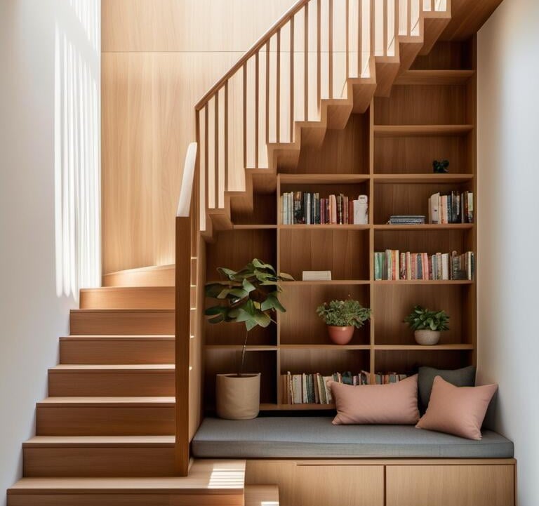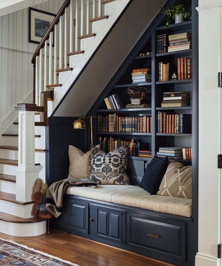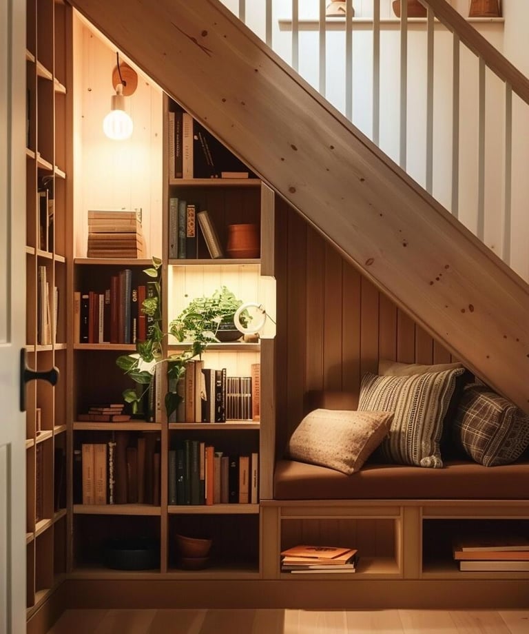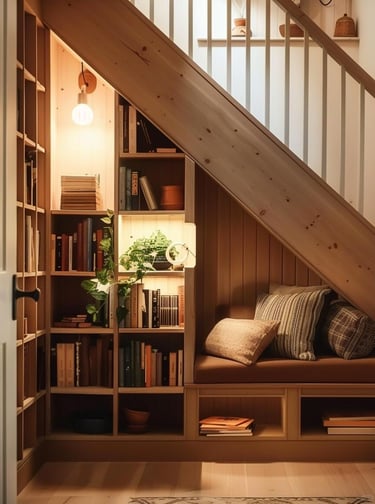 This style focuses on efficient use of vertical space, space-saving shelving composition, and built-in storage that feels intentional rather than secondary. It is ideal for turning overlooked areas into useful reading and display zones.